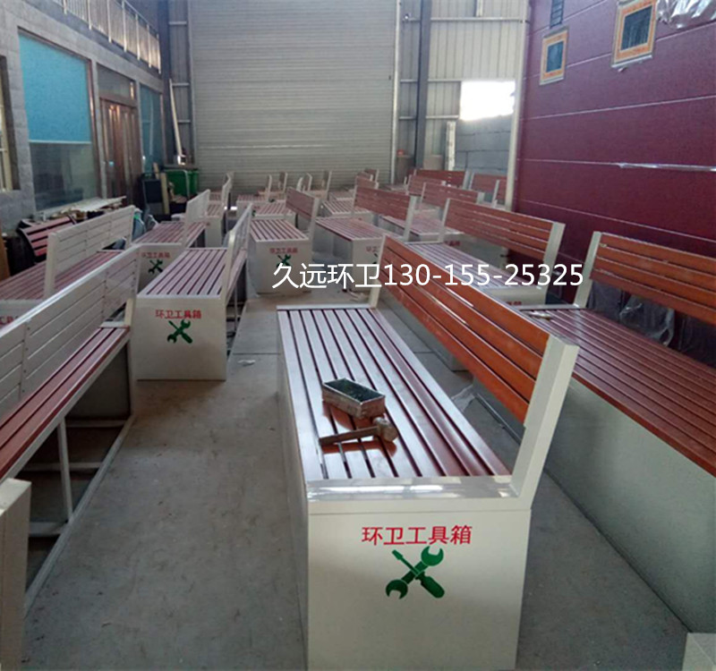 環(huán)衛(wèi)工具箱:也叫保潔員工具箱,環(huán)衛(wèi)工具椅,保潔員休息座椅,市政保潔箱等。工具箱常用尺寸為:長2400*寬500*高550mm,也可以做成2米,2.4米,2.7米等,寬度和高度也可以定做,滿足不同客戶、不同場(chǎng)所的使用要求。