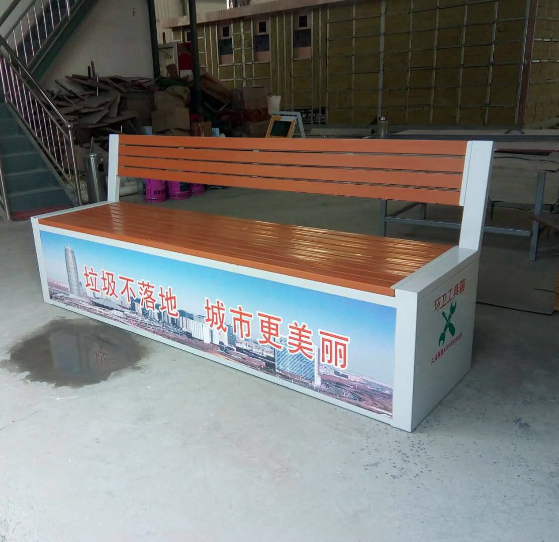 環衛工具箱:也叫保潔員工具箱,環衛工具椅,保潔員休息座椅,市政保潔箱等。工具箱常用尺寸為:長2400*寬500*高550mm,也可以做成2米,2.4米,2.7米等,寬度和高度也可以定做,滿足不同客戶、不同場所的使用要求。