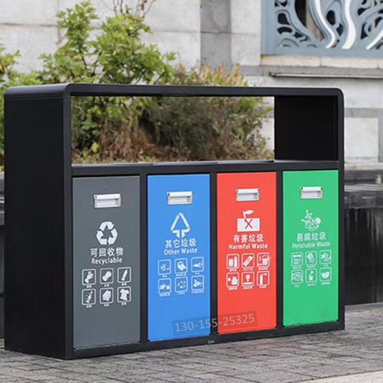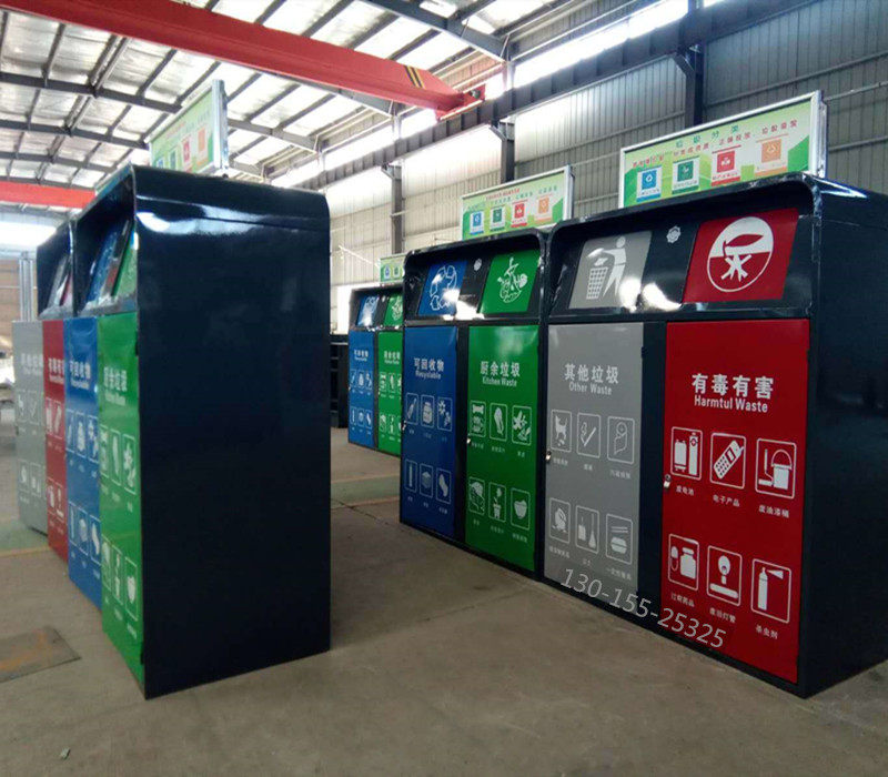 分類垃圾桶整體采用優質冷軋鋼板加工而成,表面經過除油、噴砂防銹處理后,再進行酸洗磷化處理;表面清理干燥后整體進行靜電噴涂或烤漆處理,靜電噴涂是經過流水線高溫固化爐固化后再出爐冷卻,加工后的塑粉附著力強,不易剝落。
