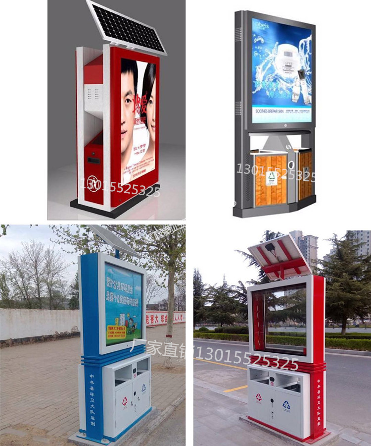 太陽能廣告式垃圾箱目前是市場上銷量最大的、廣告效益是最好的、畫面尺寸最大的一款廣告傳媒垃圾箱。